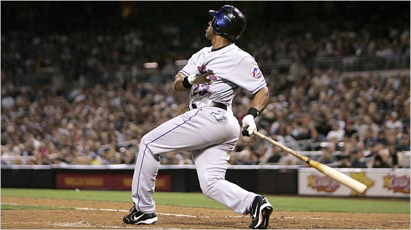 En 2005, les Mets le signent à leur tour pour un contrat de 2 ans. Il a quand même 45 ans et en 2006, il est auteur d’un grand slam. En 2007, il claque ce qui s’avère finalement son dernier HR contre Randy Johnson le 4 mai 2007. il volera même une base dans ce même match !! A 47 ans, il rentre dans les annales comme le joueur le plus âgé à frapper un HR dans les ligues majeures. Mais son âge n’est pas vraiment précis. Né officiellement selon les rosters de la MLB en 1958, certaines biographies disent que Julio Franco serait né en réalité en 1954 ! Vu les récentes confessions de Miguel Tejada, l’ex ss de Baltimore, qui avait menti de même pour faciliter son entrée sur les majors, Franco aurait pu lui aussi mentir sur son âge pour entrer dans le circuit pro. Ce qui signifierait qu’il a cogné sa dernière cartouche à l’age de 52 ans !!